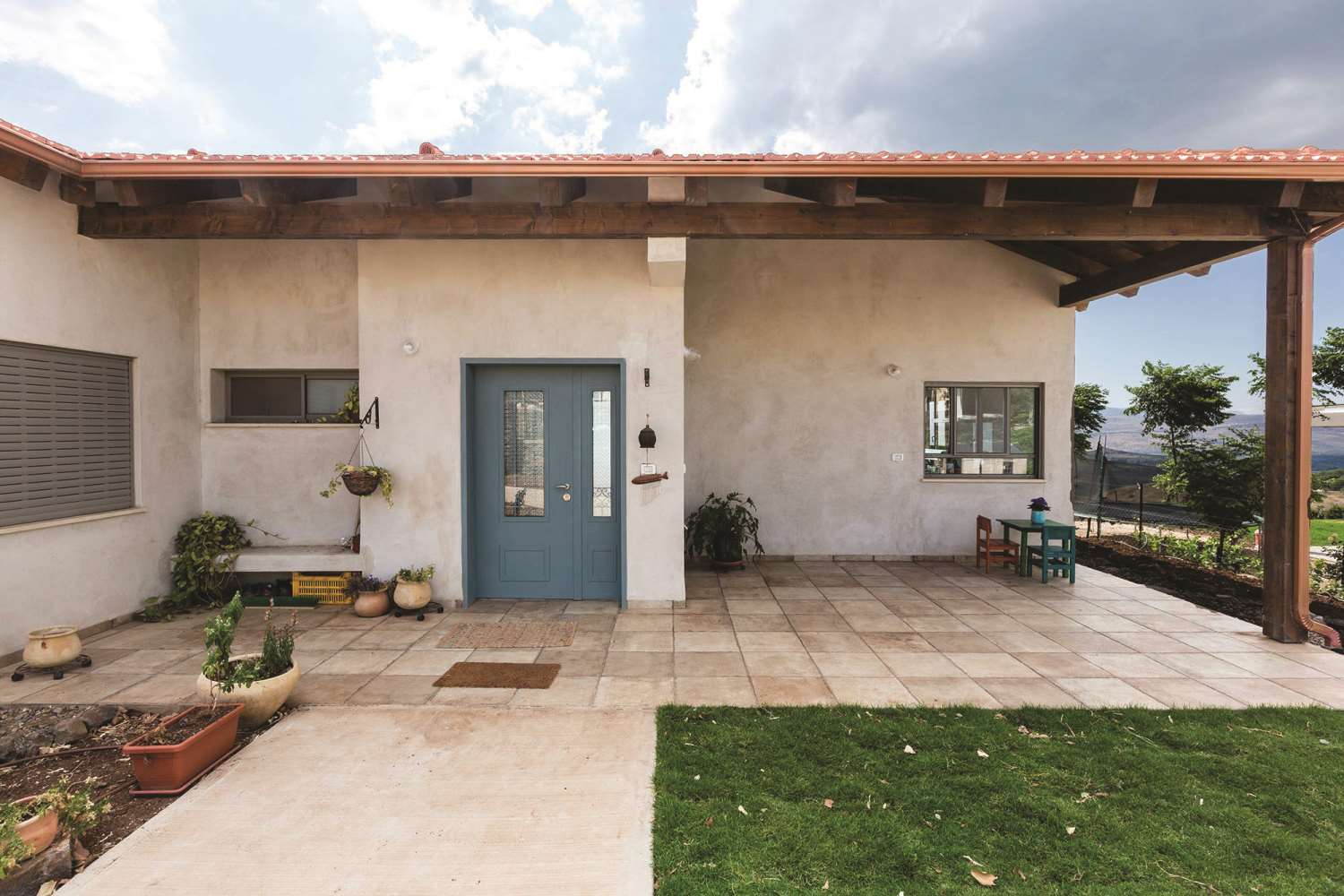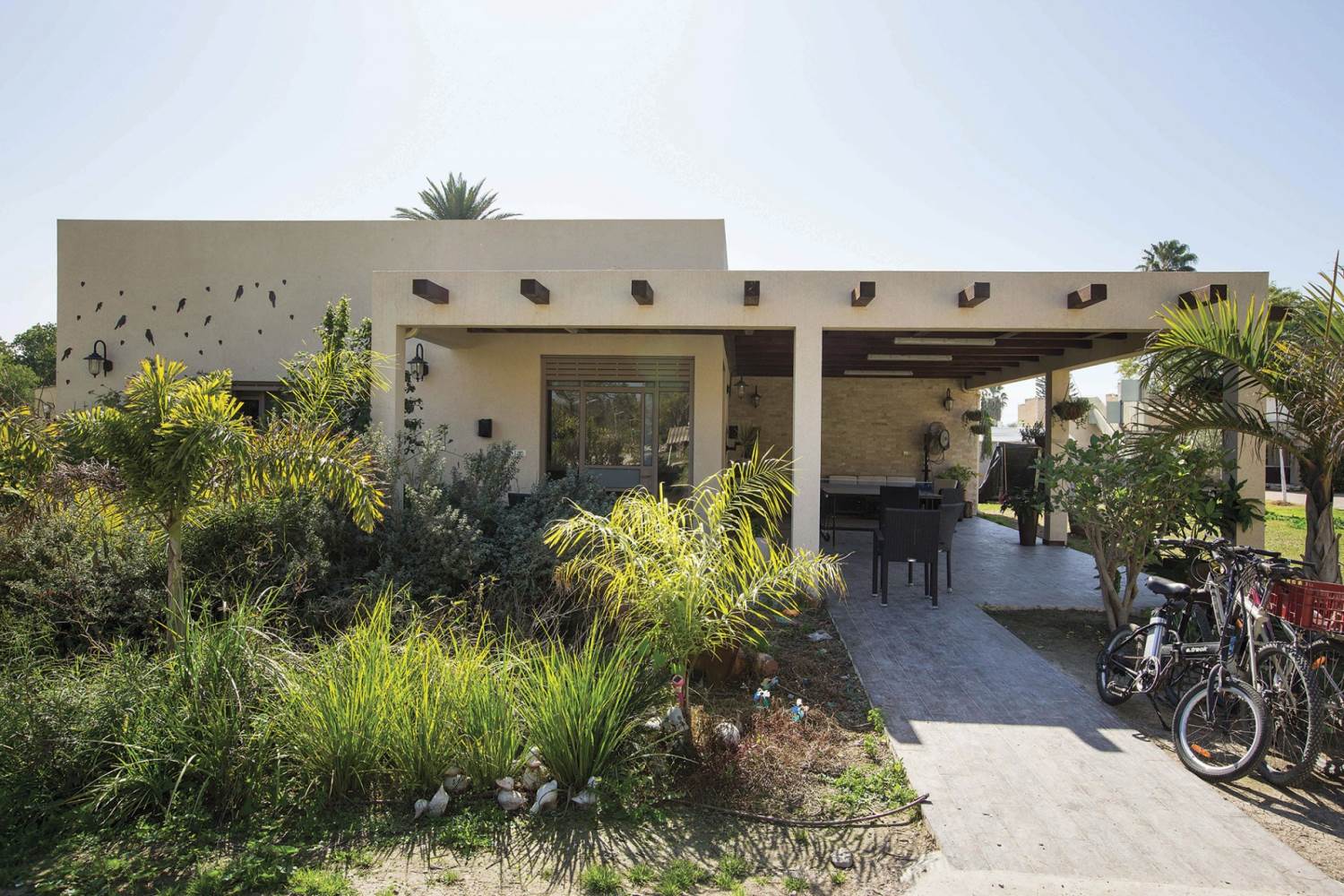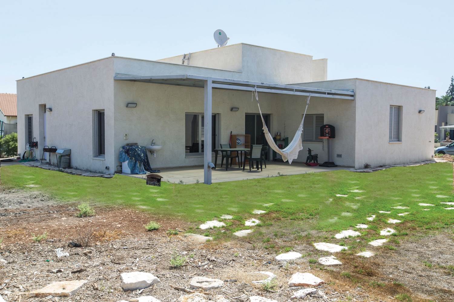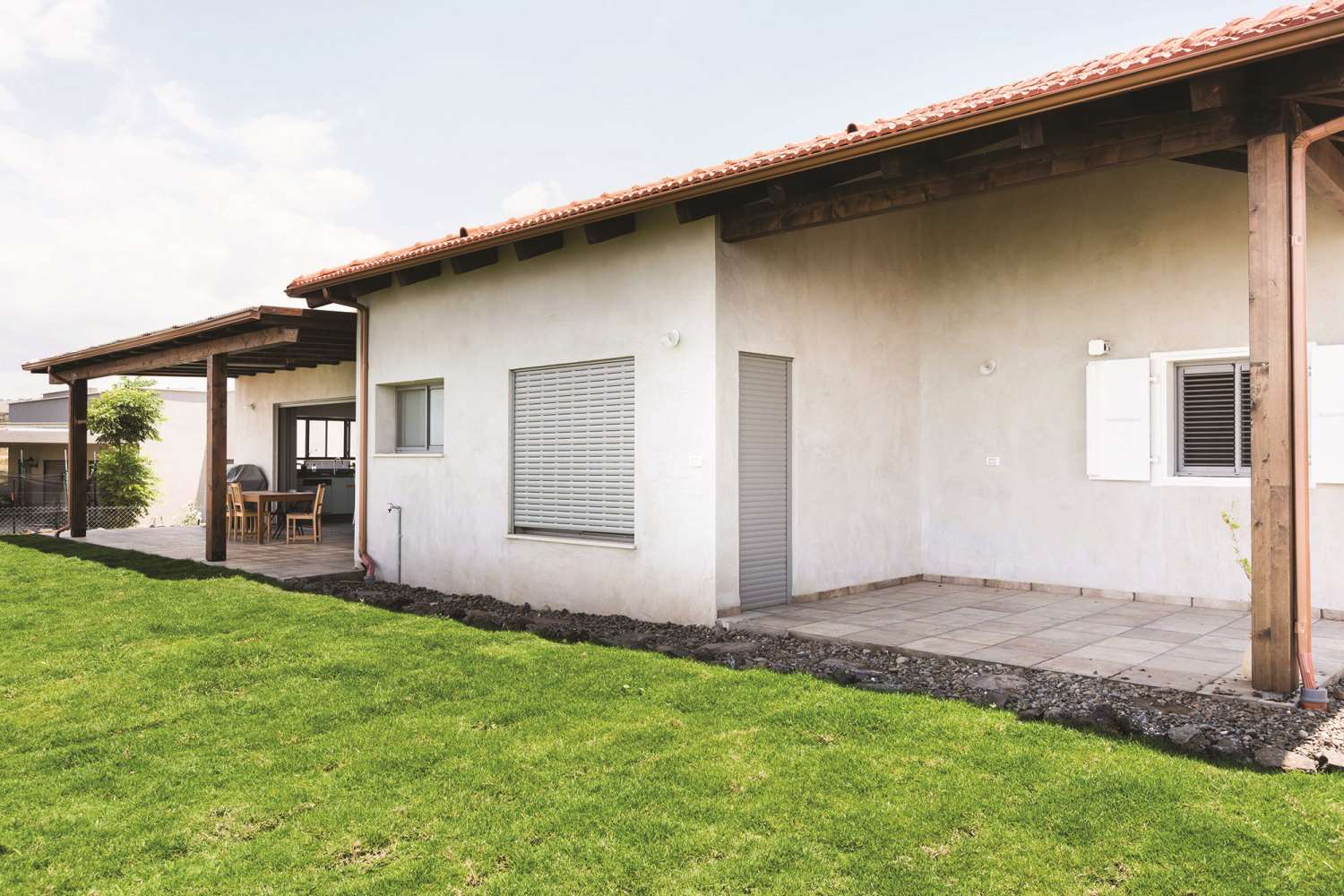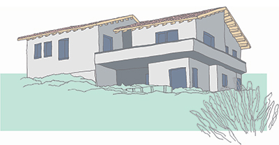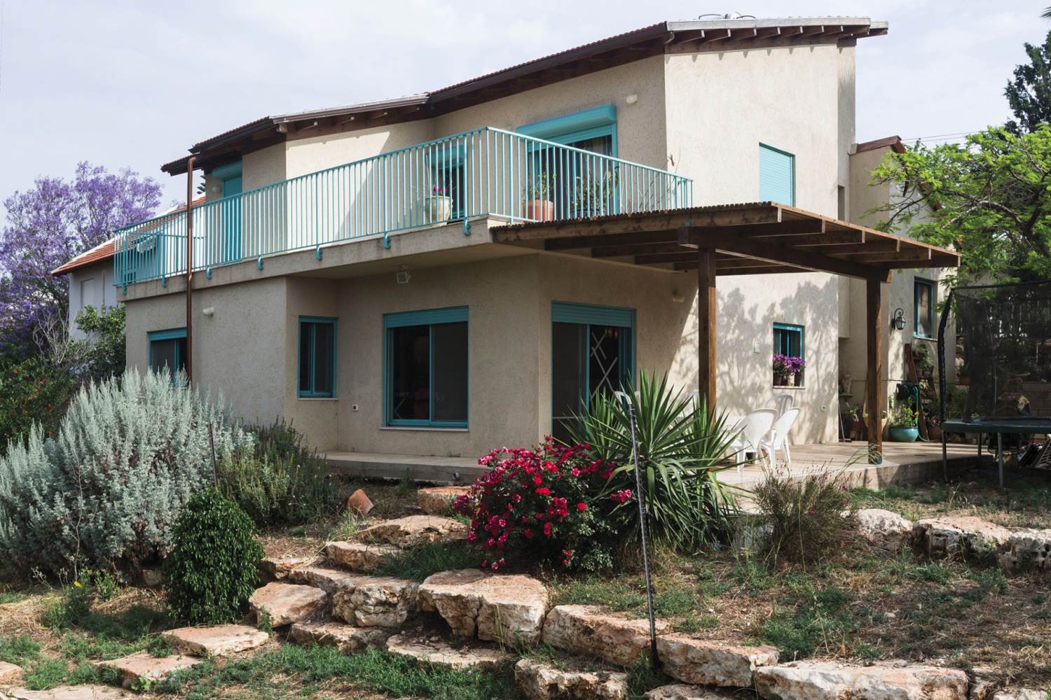 שטח 165 מ"ר, שלושה חדרי שינה ויחידה עם כניסה נפרדת (קליניקה, אורחים). חדר משפחה. דגש מיוחד על בניה אקולוגית - הצללות, איוורור (כולל מפוח איוורור), בידוד וחומרים (איטונג 30).