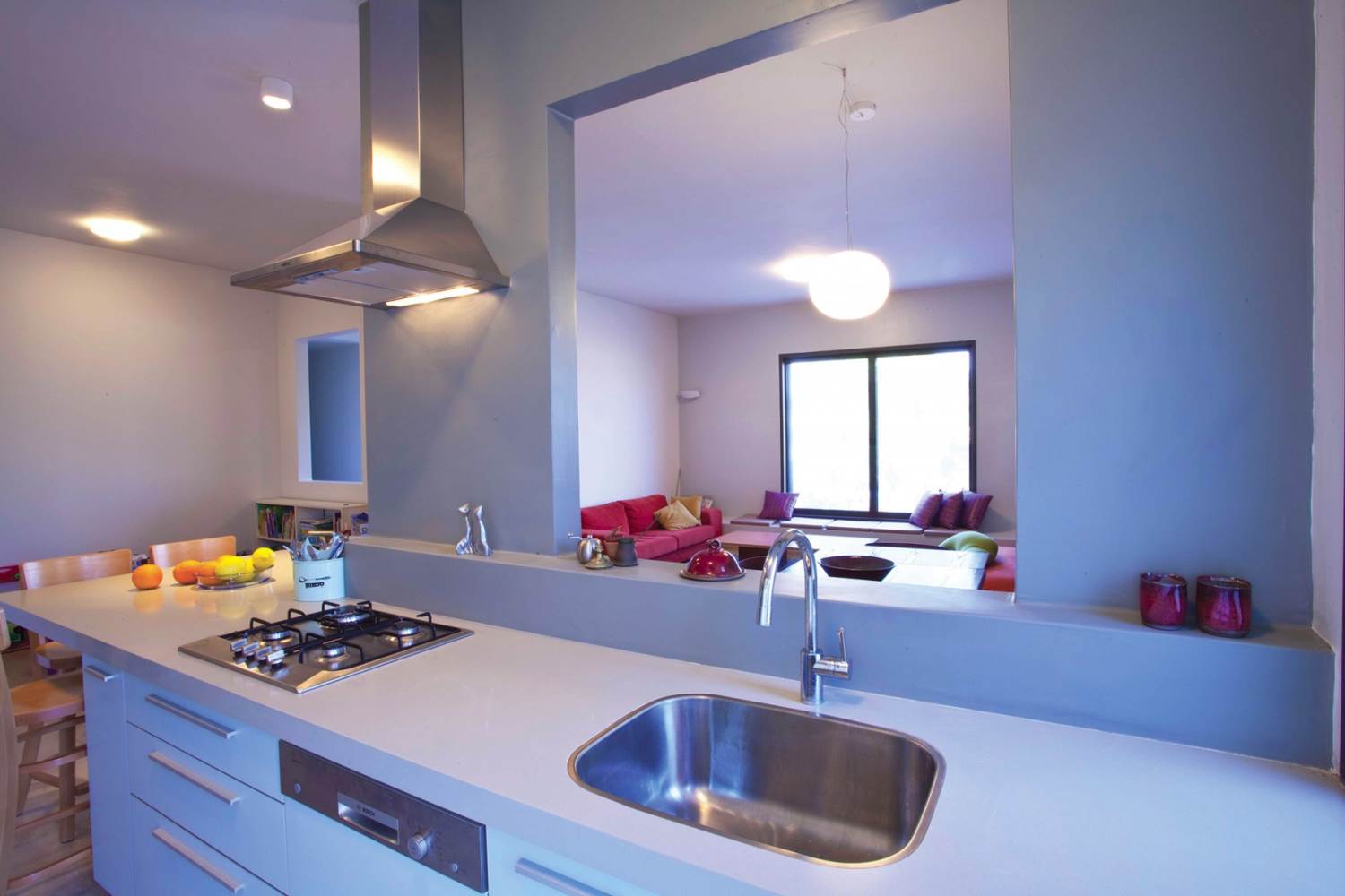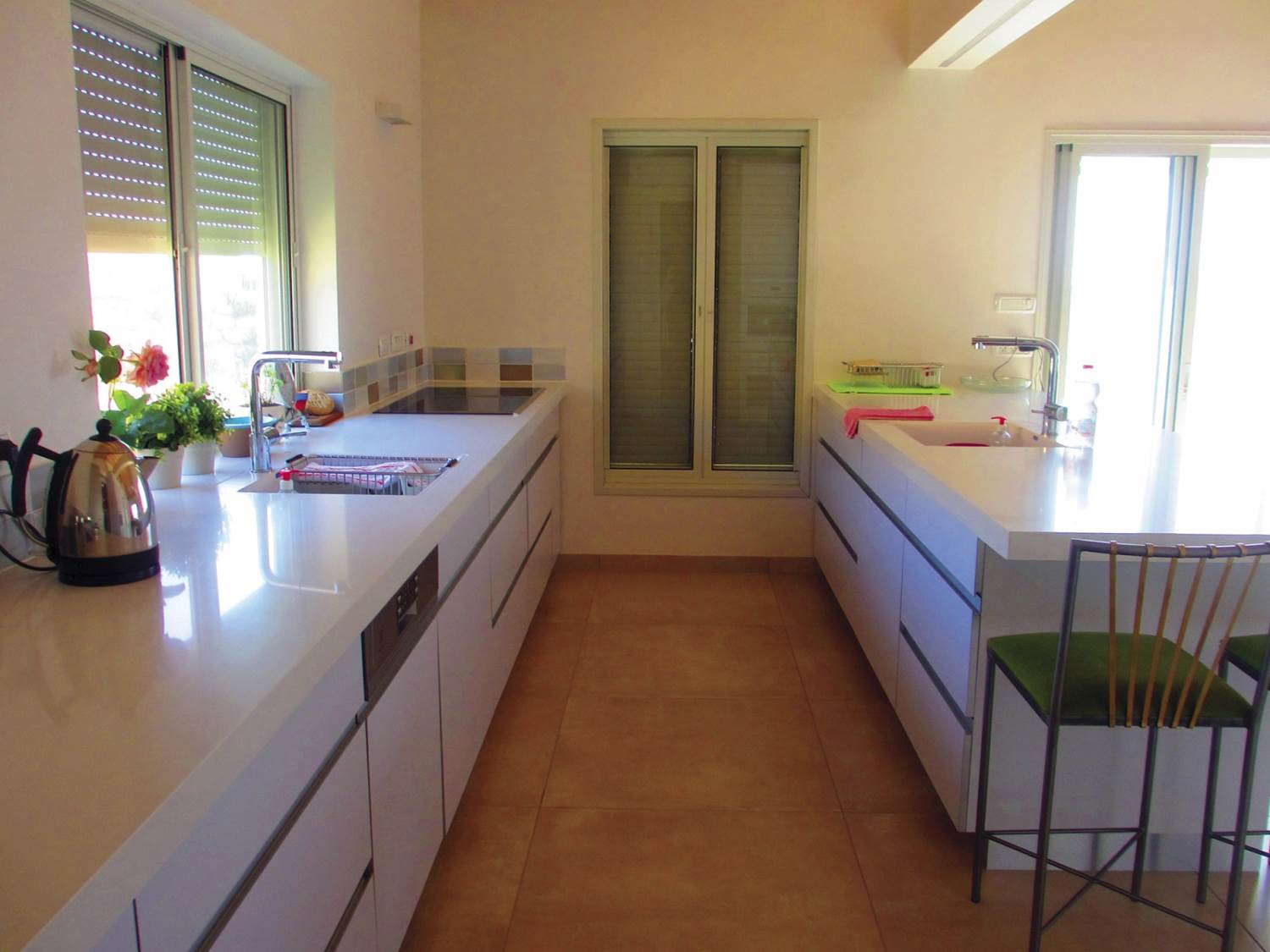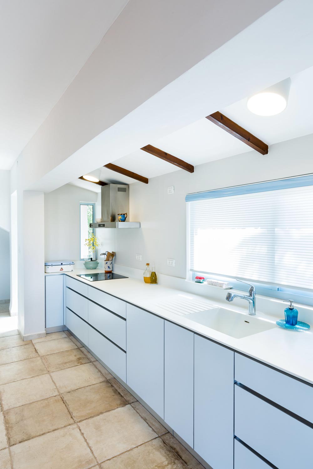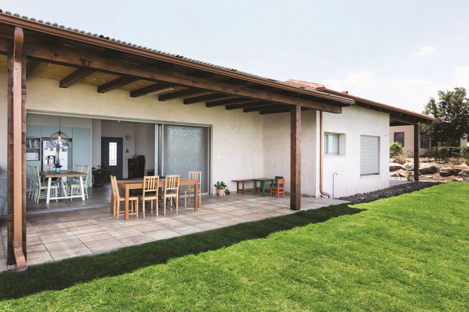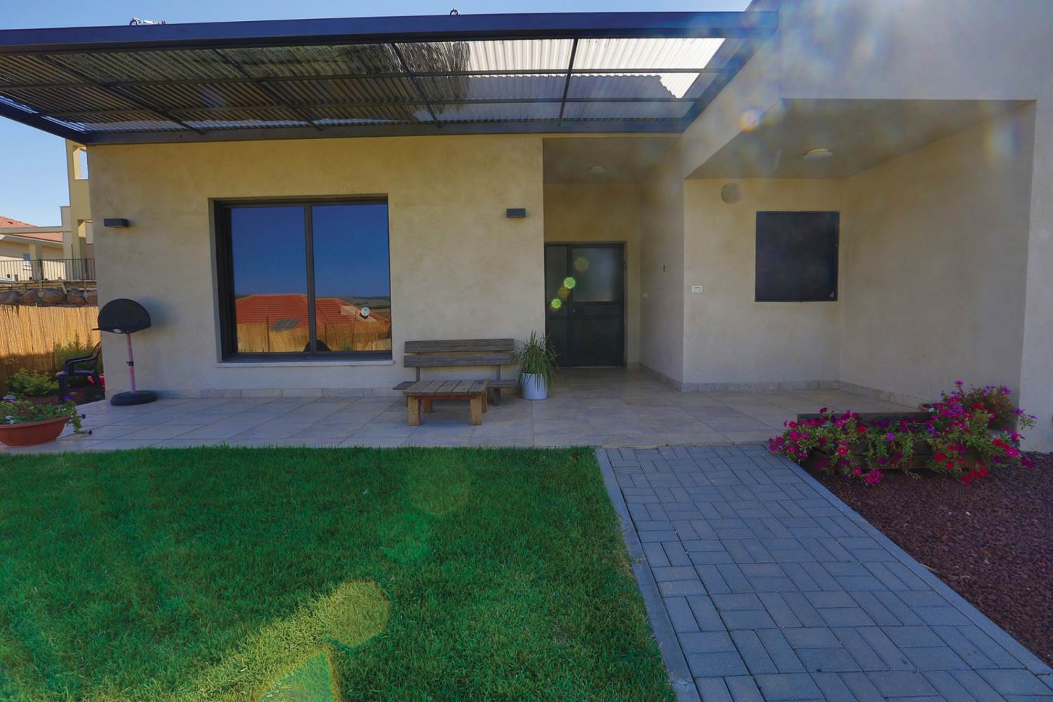 שטח 165 מ"ר, שלושה חדרי שינה ויחידה עם כניסה נפרדת (קליניקה, אורחים). חדר משפחה. דגש מיוחד על בניה אקולוגית - הצללות, איוורור (כולל מפוח איוורור), בידוד וחומרים (איטונג 30).