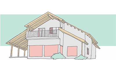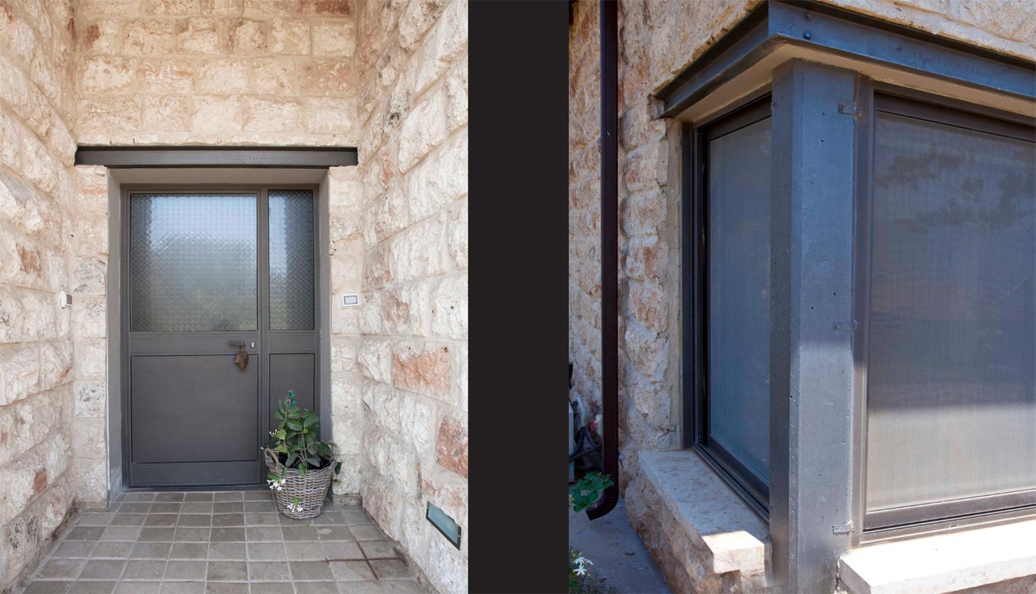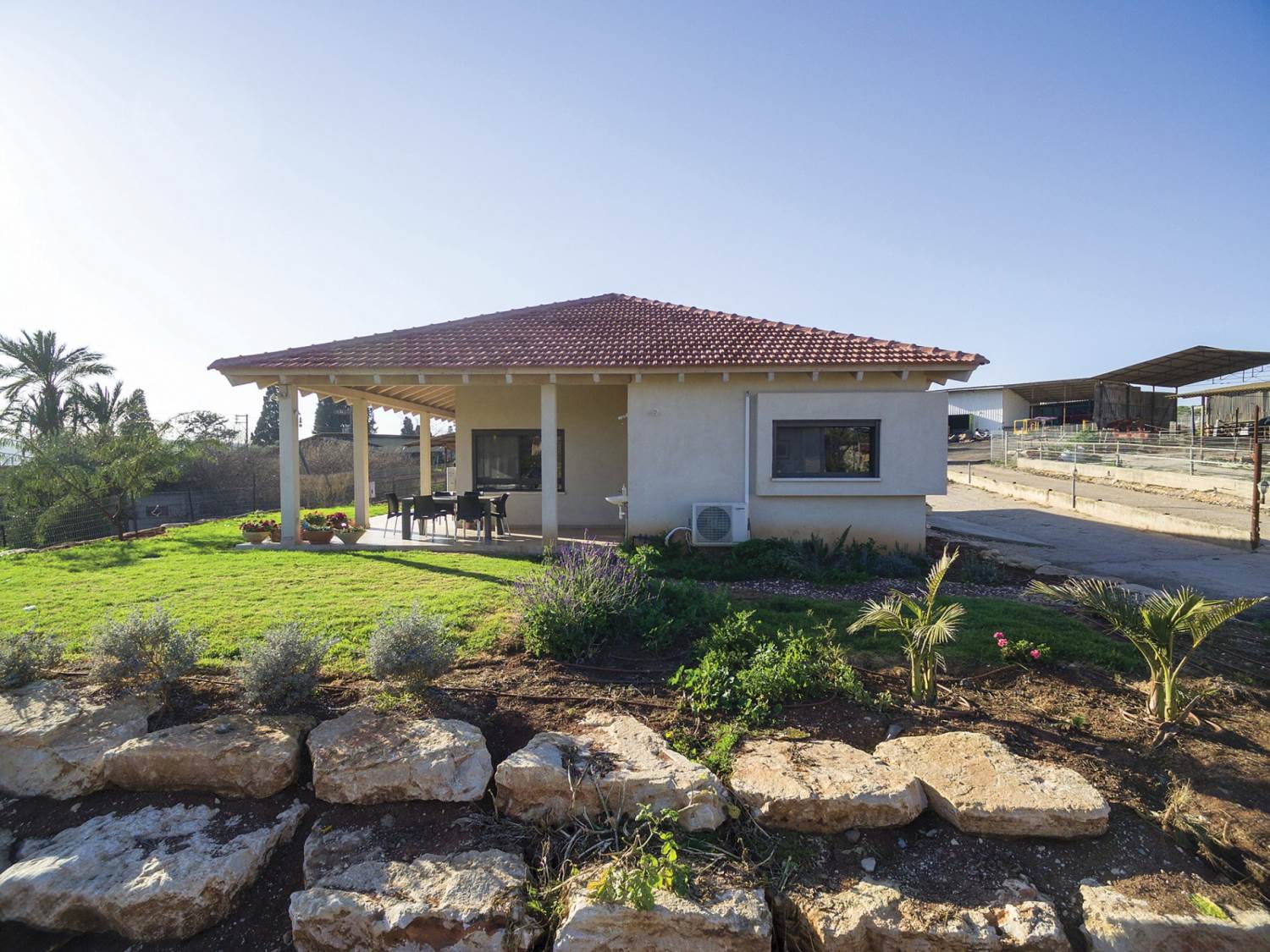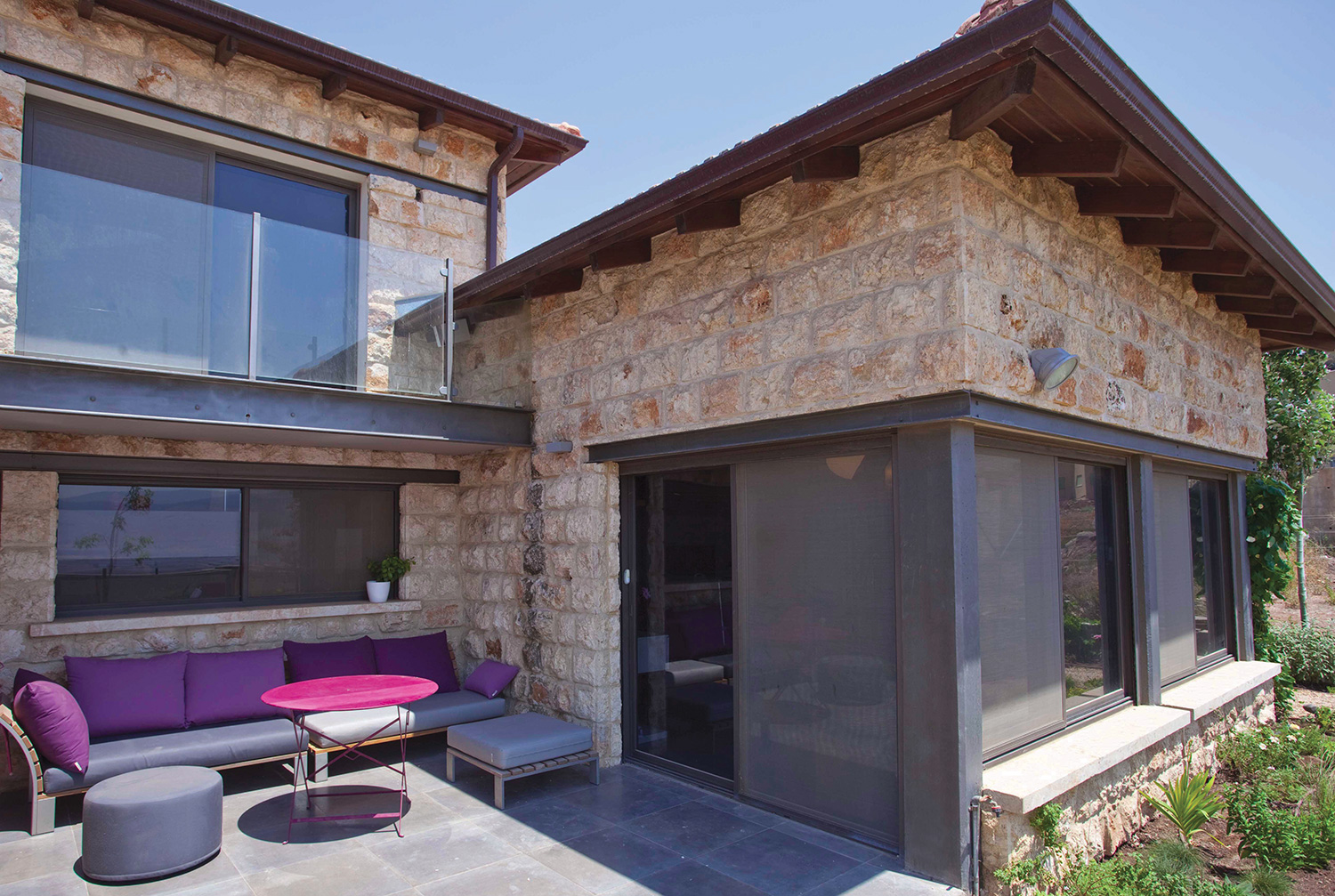 קירות חיצוניים בנויים אבן חירבה. חימום תת רצפתי. דגש מיוחד על העמדת המבנה לכיוון נוף העמק.