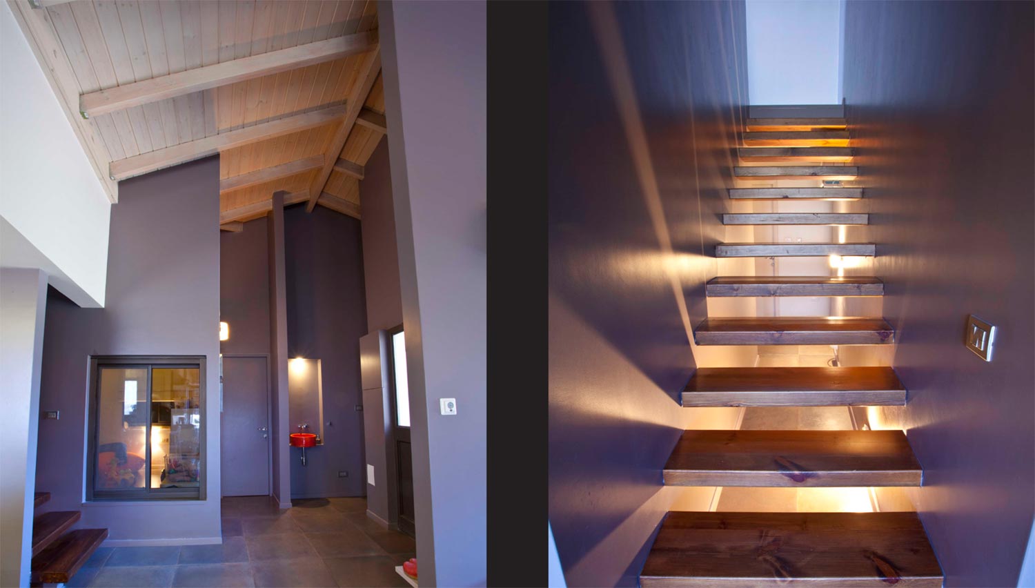 שטח 165 מ"ר, שתי קומות. קומת הכניסה (המגורים) במפלס העליון. יחידה נפרדת במפלס התחתון. דגש מיוחד על העמדת המבנה לכיוון נוף הכרמל.