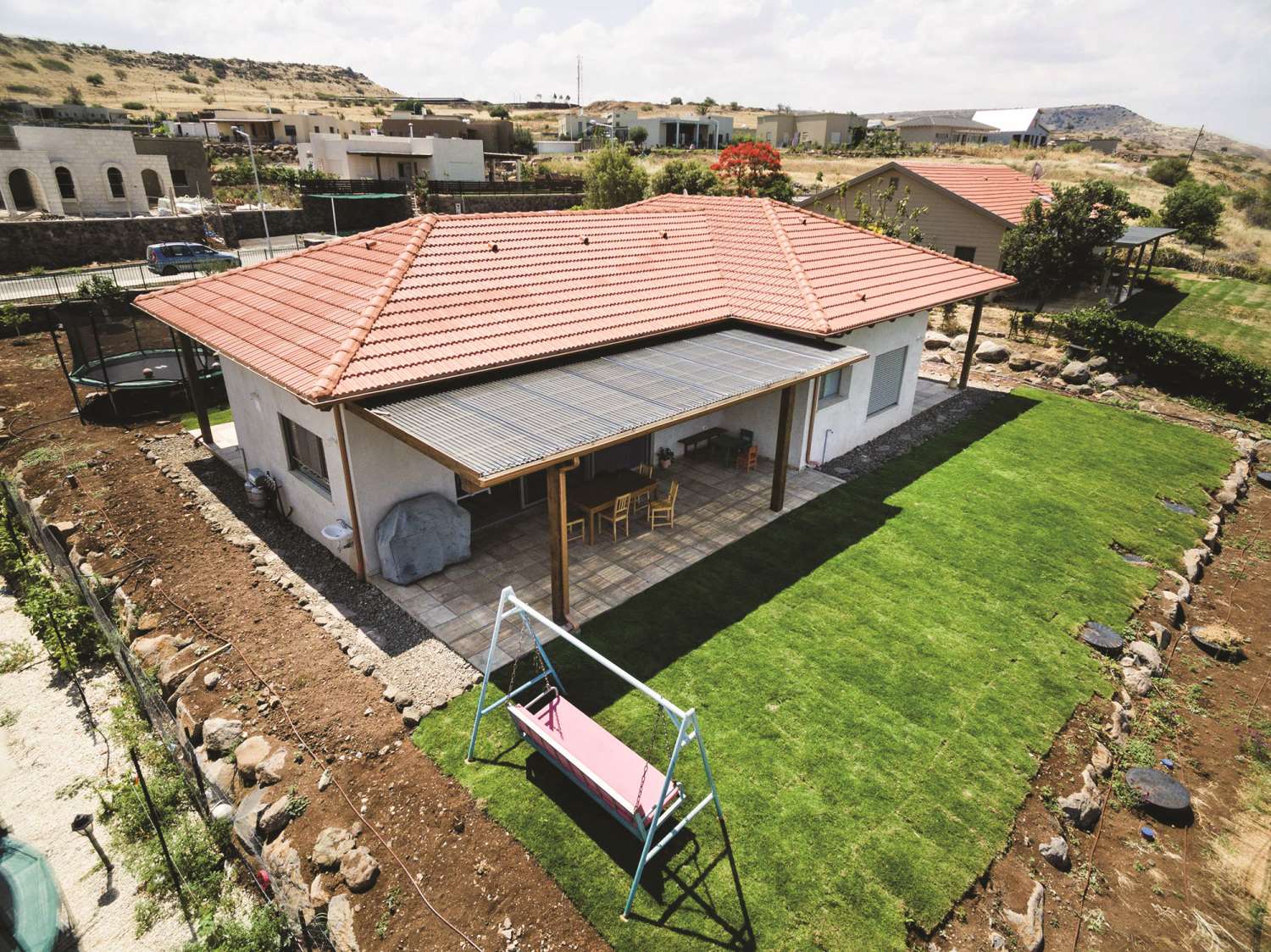 שטח 135 מ"ר, בית ב"סגנון אוסטרלי" שאומר ששטח הגג גדול משטח המבנה. דגש מיוחד על העמדת המבנה לכיוון נוף הגלבוע.