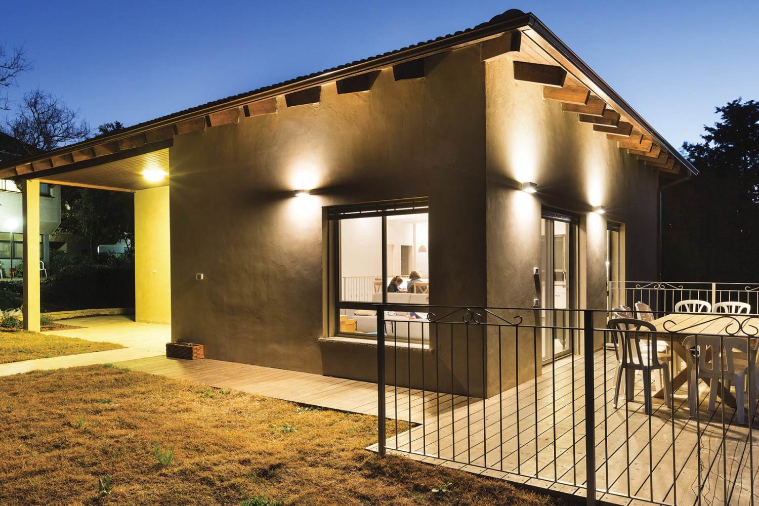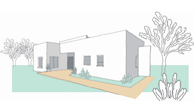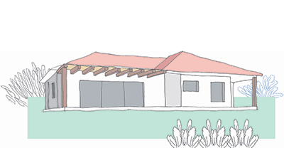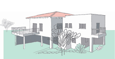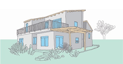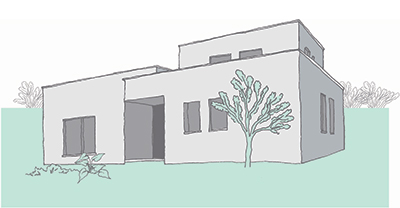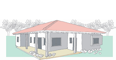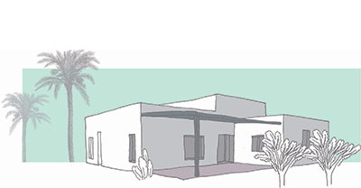 שטח 135 מ"ר, שלושה חדרי שינה + חדר משפחה. דגש מיוחד על בניה אקולוגית (הצללות, איוורור, בידוד וחומרים).